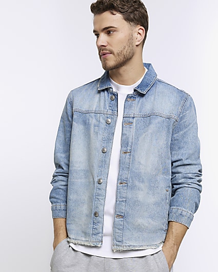 Product Item: Light blue denim outlet jacket mens outfit