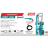 Hidrolavadora 1800w Total Tools, de una potencia de 1800W y voltaje de 110 – 120V~50/60Hz. Su presión máxima es de 150 bar (2200psi), su flujo máximo es de 6.0L/min. Incluye una pistola de agua, manguera de 5m y sistema de apagado automático. De un peso de 8.8 Kg.